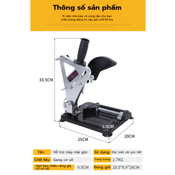 Giá đỡ chuyển đổi máy cầm tay thành máy bàn là thiết bị hỗ trợ tối ưu, giúp bạn biến máy cắt hoặc máy mài nhỏ gọn thành máy bàn chuyên nghiệp chỉ trong vài phút. Thiết kế chắc chắn, trọng lượng ổn định và cơ chế điều chỉnh chính xác giúp người dùng thao tác an toàn, nhanh và hiệu quả.