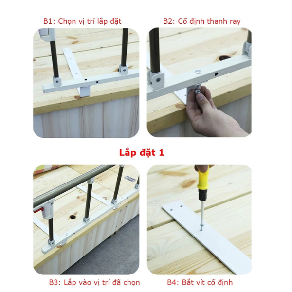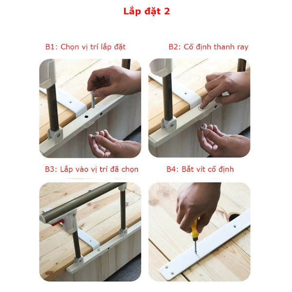 - Đặt thanh chắn song song với thành giường, cố định bằng vít kèm theo.