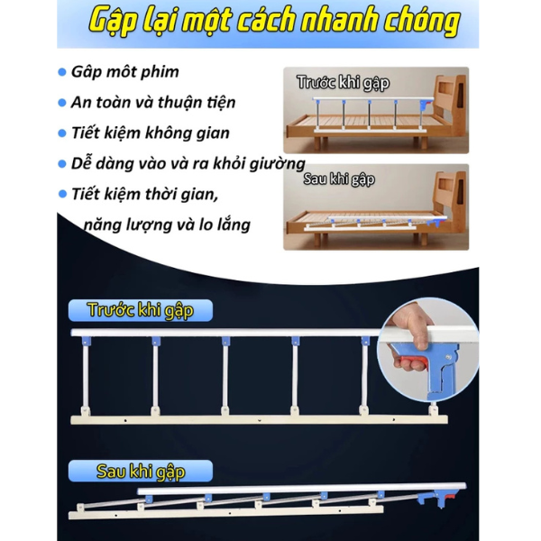 - Khi cần ra vào giường, nhấn nút đỏ để gập gọn.