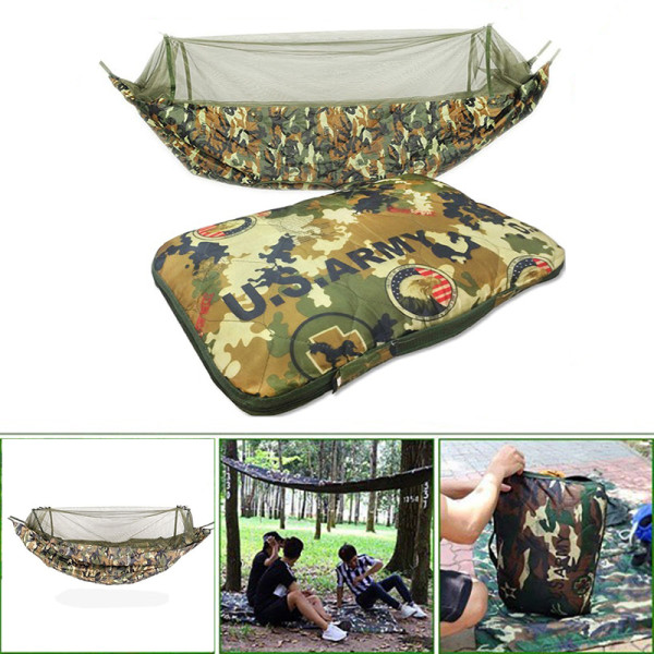 Võng mùng quân đội 2 lớp chống muỗi và côn trùng có thiết kế gọn nhẹ, võng có thể xếp lại gọn gàng, cho vào trong túi nhỏ, thuận tiện mang theo khi đi du lịch, dã ngoại, picnic, …